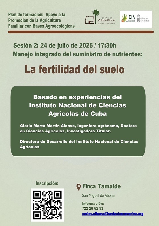 Esta parte del programa formativo tendrá lugar el día 24 de julio a las 17:30 y será impartida por la Dr. Gloria Marta Martín Alonso, Directora de Desarrollo del Instituto Nacional de Ciencias Agrícolas de Cuba.
